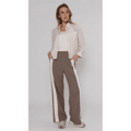 Broek van Poools. Deze navy broek met witte bies is dé perfecte mix van comfy en stijlvol. Door de wijde pijpen en de elastische tailleband zit hij heerlijk, terwijl de contrasterende zijbaan zorgt voor een sportieve, trendy uitstraling. Ideaal voor een casual dag, maar ook super leuk om chic te stylen met een blazer.