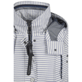Zomerjas van het merk Barbara Lebek. Deze sportieve jas met blauw-witte streep heeft een frisse, maritieme uitstraling en is uitgevoerd in een lichte, waterafstotende kwaliteit. De combinatie van rits- en drukknoopsluiting, samen met de afneembare capuchon en contrasterende details, geeft de jas een moderne en functionele look. De licht getailleerde pasvorm zorgt voor een vrouwelijk silhouet, terwijl de technische accenten het geheel een sportieve touch geven.